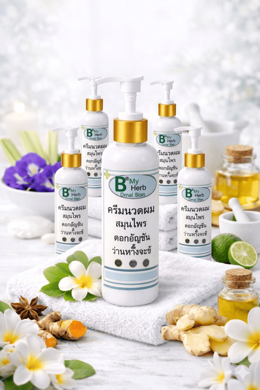 บอกลาปัญหาผมแห้งชี้ฟูและขาดความเงางามด้วยครีมนวดผมสูตรสมุนไพรแท้ ที่ดึงเอาพลังของ “ดอกอัญชัน” ในการสร้างเม็ดสีผมให้ดกดำ และ “ว่านหางจระเข้” ที่ทำหน้าที่เป็นมอยส์เจอไรเซอร์ธรรมชาติ ช่วยปลอบประโลมหนังศีรษะและเคลือบเส้นผมให้แข็งแรงตั้งแต่โคนจรดปลายครับ ✨