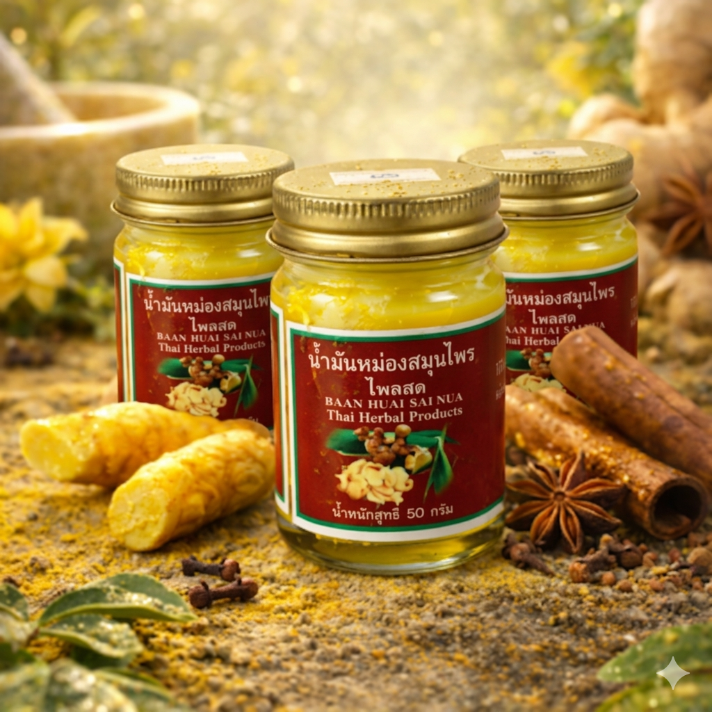 หัวใจสำคัญของยาหม่องขวดนี้คือ “ไพลสด” สมุนไพรไทยที่ขึ้นชื่อเรื่องการลดการอักเสบและคลายกล้ามเนื้อ เราคัดสรรวัตถุดิบจากท้องถิ่นผ่านกระบวนการผลิตที่ใส่ใจ เพื่อให้ได้น้ำมันหม่องเนื้อเนียนละเอียดสีเหลืองทองที่เปี่ยมไปด้วยสรรพคุณทางยา พร้อมกลิ่นหอมบำบัดแบบไทยแท้ที่ช่วยให้คุณรู้สึกสดชื่นทุกครั้งที่ใช้งานครับ ✨