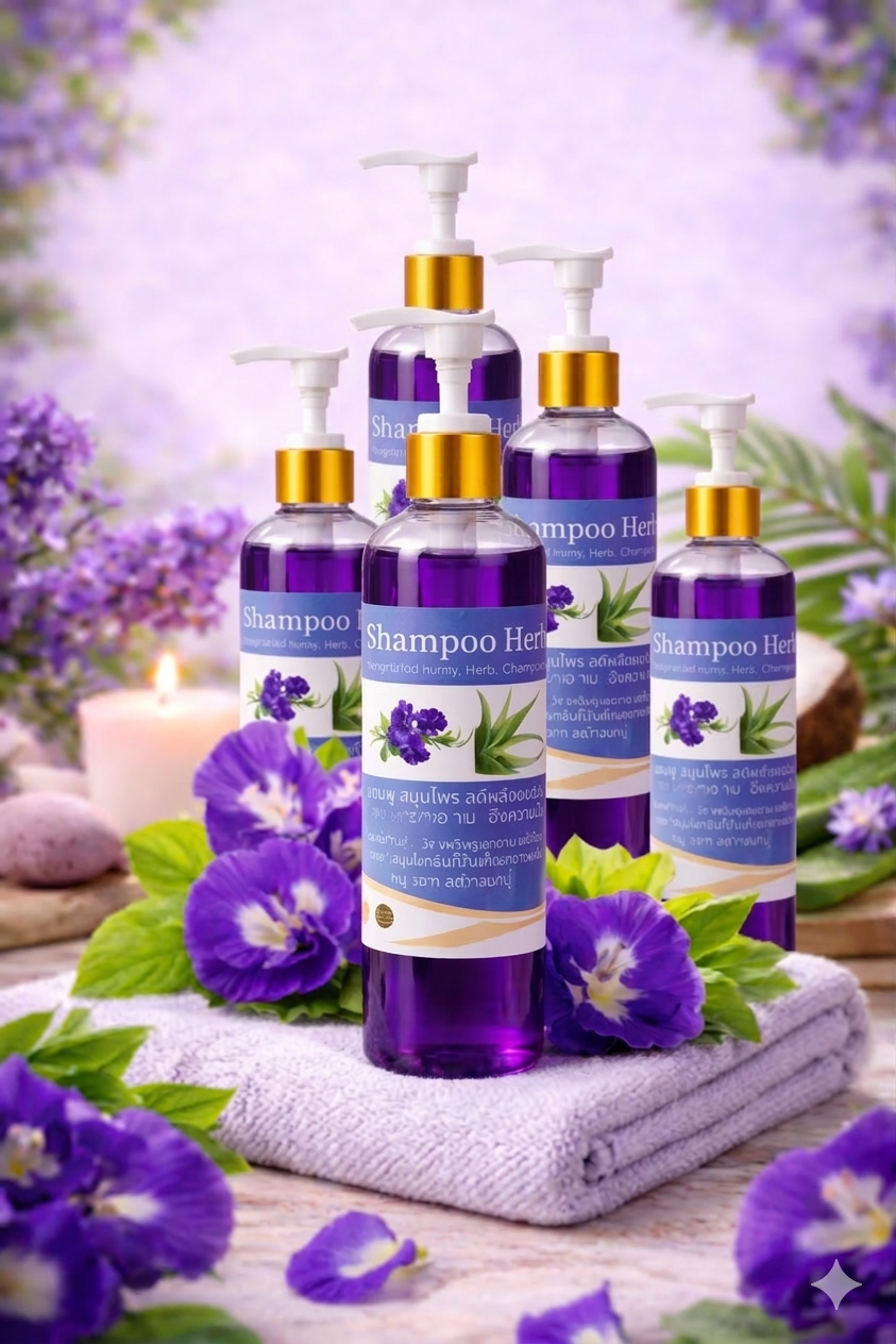 • ชื่อสินค้า: แชมพูสมุนไพรอัญชัน (Butterfly Pea Herbal Shampoo)